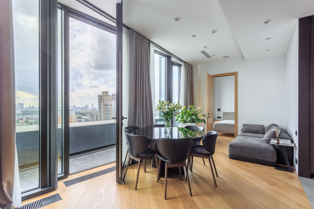 В ЖК Алкон Тауэр можно купить апартаменты площадью от 25 до 256 кв.м. Варианты до 50 кв.м предлагаются с финишной отделкой в современном лаконичном стиле. Все долгие черновые работы позади, после получения ключей вы сможете сразу планировать новоселье. В апартаментах от 50 кв.м будущие владельцы смогут спланировать и реализовать дизайн-проект по своему вкусу. Панорамное остекление и высокие потолки от 3,3 метров наполняют жилые пространства светом и воздухом, создавая ощущение простора и воздушности. С высоких этажей резидентам откроется впечатляющая панорама на столицу как на ладони.